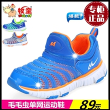 牧童男女童鞋2017夏秋季新款单网透气大中小童运动休闲镂空毛毛虫