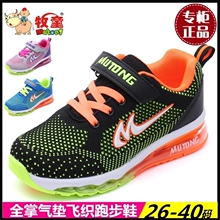 牧童男童鞋运动鞋2017春季新款女童气垫底飞织透气休闲鞋大码正品