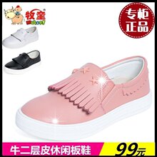 牧童童鞋女童皮鞋春季新款儿童真皮单鞋小中大童流苏公主黑白板鞋