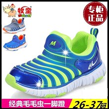 牧童童鞋男童女童运动鞋2017春新款儿童毛毛虫休闲鞋耐磨套脚闪灯