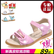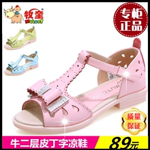 牧童童鞋2017新款女童凉鞋夏季露趾舒适防滑耐磨真皮公主凉鞋正品