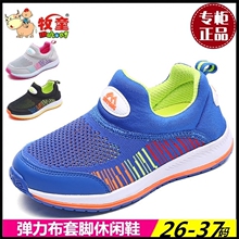 牧童男童运动鞋2017春新款女童透气网布儿童套脚轻便休闲鞋耐磨舒