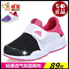 牧童童鞋运动鞋2017春新款单网布休闲鞋男女童透气耐磨运动弹簧鞋