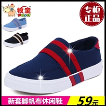 牧童童鞋男童帆布鞋2017新春款男童童鞋休闲中大童套脚学生黑板鞋