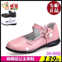 牧童女童皮鞋2017春新款女童白真皮黑色表演鞋中大童方口单鞋公主