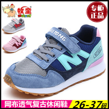 牧童童鞋男童运动鞋2017春季新款女童耐磨休闲鞋复古字母网布透气