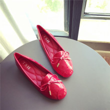 香港代购蝴蝶结舒适软底平底鞋漆皮红色圆头浅口瓢鞋女单鞋职业鞋