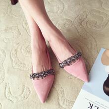韩国代购女鞋2017春夏新款尖头水钻平底鞋时尚反绒皮浅口女单鞋潮