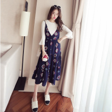 大码女装春装2017新款潮套装胖mm打底衫胖妹妹吊带连衣裙两外套装