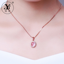 925银项链女玫瑰金锁骨链粉水晶吊坠芙蓉宝石配饰简约紫晶挂饰品