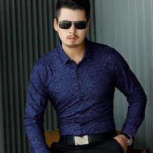 专柜正品加绒长袖衬衫男2016秋冬装加厚款男士免烫印花潮男装衬衣