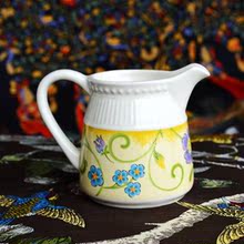 瑕疵/法式乡村浮雕陶瓷/罗浮迪尔勾藤花餐用小奶壶/奶杯/花壶