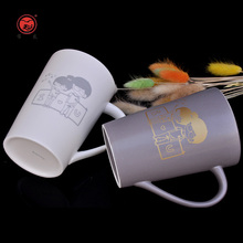 宝发陶瓷杯 卡通简约情侣马克杯子一对 新骨瓷牛奶水杯带盖带勺