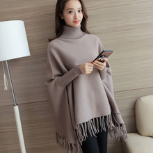 套头毛衣女2017春装韩版中长款流苏蝙蝠衫披肩外套宽松针织衫潮