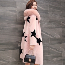 茜美丝菲羊剪绒皮毛一体羊羔毛皮草外套女中长款大衣狐狸毛水貂帽