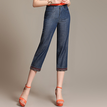 2017夏女薄款天丝七分裤女高腰牛仔裤女大码显瘦小脚裤冰丝7分裤