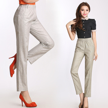 春夏亚麻九分裤薄款休闲裤女 小脚裤大码女裤修身小直筒裤彩裤子