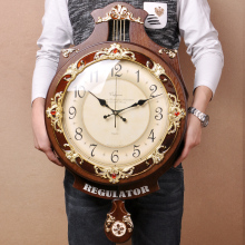 欧式挂钟钟表挂钟客厅时尚创意钟表简约静音石英仿古卧室摇摆时钟