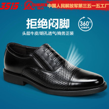 强人3515夏季商务休闲真皮镂空透气打孔系带办公男网眼皮鞋爸爸鞋