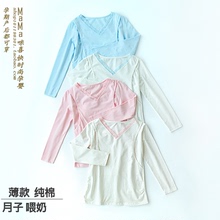 纯棉薄哺乳秋衣上衣春夏季长袖喂奶产后月子服产妇棉毛衫孕妇睡衣