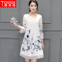 2017新款春款春夏刺绣仙鹤绣花盘扣欧根纱改良旗袍连衣裙春裙女