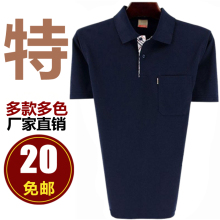 夏季装中年男士短袖t恤衫爸爸装体恤中老年宽松大码纯棉翻领T恤衫