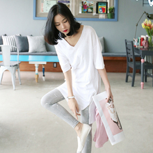 下摆开叉五分袖宽松竹节棉白t恤女2017夏装短袖中长款圆领打底衫