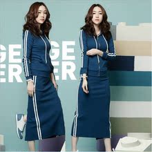韩国东大门代购2016秋季装新款卫衣女大码女胖MM休闲运动长裙套装
