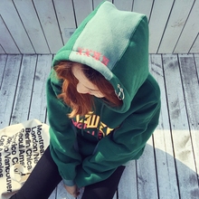 韩国东大门代购2016冬装韩版卡通宽松套头字母加绒加厚长袖卫衣女