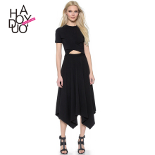 Haoduoyi2017春夏新款不规则中长款修身显瘦性感镂空黑色连衣裙女