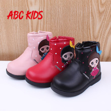ABC童鞋2017冬新款加绒宝宝鞋加绒皮鞋防滑儿童女童靴子P55112516