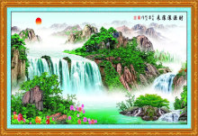 山水风景国画装饰墙贴画风水财运客厅书房装饰画流水生财财源滚滚