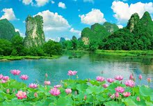 大幅高清山水瀑布风景画现代背景墙装饰画覆膜防水墙贴画桂林山水
