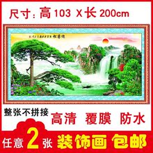 覆膜防水纸画山水风景瀑布墙画现代室内装饰画迎客松树林墙贴年画