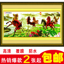 现代书房客厅装饰山水风景画国画八骏全图纸制防水墙贴画喜庆年画