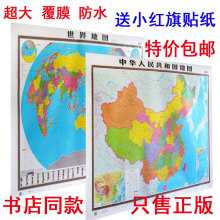 2017年全新版中国世界地图覆膜防水挂图各省地图办公室装饰墙贴画