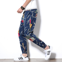 夏季印花九分裤男士加肥加大码宽松小脚哈伦裤潮胖收口缩腿束脚裤