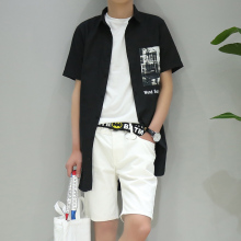 夏季青年短袖中长款衬衫男士加肥加大码休闲外套潮胖半袖衬衣薄5X