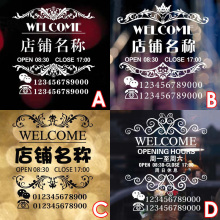 欢迎光临营业时间玻璃门贴纸咖啡奶茶服装店铺推拉门橱窗装饰墙贴