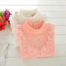 女童蕾丝花边领打底娃娃白衬衫百搭长袖公主儿童宝宝纯棉T恤上衣