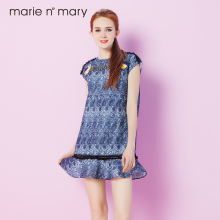 玛丽安玛丽女秋装梭织提花荷叶边短袖连衣裙MM1437BWOP617