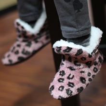 豹纹儿童地板袜 短筒靴袜防滑地板袜宝宝冬季保暖袜子加绒袜