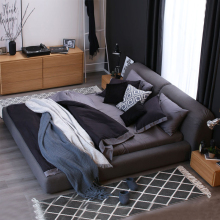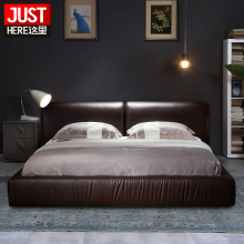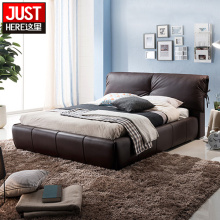 皮床 北欧简约现代1.8米双人实木皮艺床软床储物大小户型真皮床