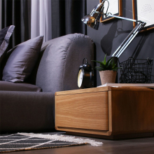 实木床头柜 现代中式床头柜 收纳柜 简约卧室储物柜 金胡桃色