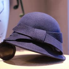 冬天女士羊毛帽大蝴蝶结渔夫帽宽檐圆顶盆帽
