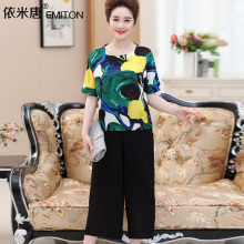 妈妈装夏装套装雪纺半袖大码宽松T恤40-50岁中年女装两件套裙裤