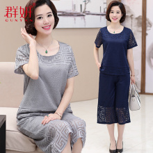 母亲节衣服妈妈装夏装套装奶奶装T恤短袖中老年人女装薄款两件套