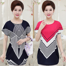 中老年女装加肥加大码夏季短袖T恤宽松奶奶妈妈装雪纺上衣特大码