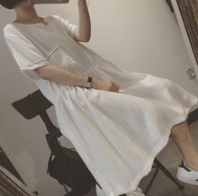 夏季新款韩国简约百搭小清新减龄森女学院风连衣裙中长款女生长裙