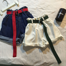 夏季新款韩国复古港味chic宽松百搭卷边花苞高腰牛仔短裤女热裤潮